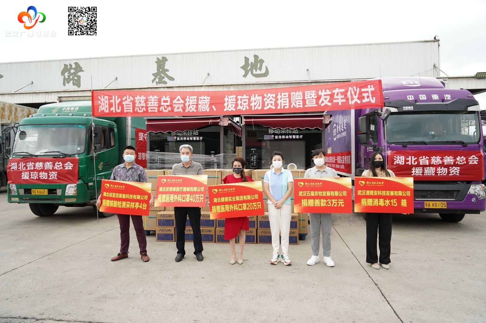 携手抗疫,同心前行。近期,西藏、海南等地疫情防控形势严峻,深深牵动着湖北人民的心。湖北省慈善总会闻令而动,积极组织捐赠,湖北省内多家爱心企业慷慨解囊、踊跃奉献爱心,8月31日,装载价值百万元的抗疫物资货车从武汉市东西湖区盛辉物流园出发,分别驰援西藏、海南等地疫情防控工作。