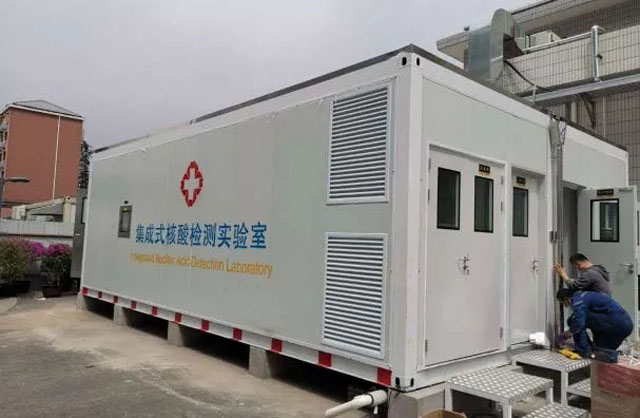 方舱实验室需要场地平整工作完成项目基础建设、给排水工程建设、铺设各类线路,达到方舱安装条件。方舱实验室占地100平方左右,在满负荷检测情况下,每天可以1万份检测量。检测量非常高,是疫情防控应用比较广泛的实验室。能迅速掌握患者体内的病毒含量,精确度高达纳米级别,可为新冠肺炎临床诊疗和疫情防控提供及时、准确的检测结果。实验室里面有试剂准备室,样本检测室,扩增PCR室。配套有更衣室,缓冲室,洗浴室,洗消室。