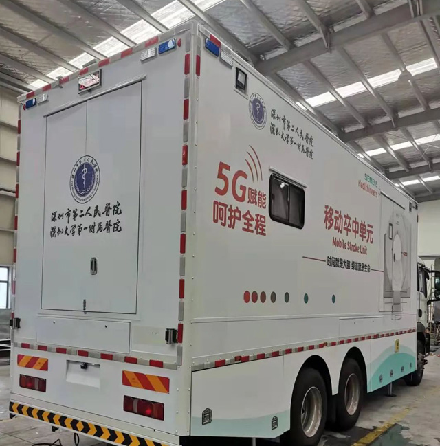 脑卒中又称中风,我国的中风患者有70%以上是属于脑梗死,黄金三小时仍然是铁律,不允许丝毫的延误。虽然经过十几年时间的医疗技术救治技术的不断发展,脑梗死的溶栓治疗时间窗期从3个小时延长到4个半小时,改装的移动CT脑卒中救护车,完成了救护车+CT+溶栓,加快了患者接受治疗的时间。救护车上面的各项监测仪器血气分析等。病人可以在救护车上面得到初步的治疗。还可以通过先进的5G通信网络,实现跟医院的专家及时通讯指导救护,医院医务工作人员可更加便利地获得来自中国专家的技术发展指导,提升企业基层技师的专业学习能力和诊断水平。这样不仅确诊时间短了,而且还能加快溶栓及治疗进度。这些步骤在进医院前完成,将尽可能降低了脑卒中的死亡率和致残率。