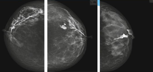 乳腺导管内乳头状瘤分为以下两个,位于乳晕区大导管的中央型乳头状瘤,起源于末梢导管小叶单位的外周型乳头状瘤。外周型乳头状瘤常常没有明显的的临床表现,常因X线或乳腺超声设备检查发现。重点要关注的是中央型乳头状瘤,发生于任何年龄的女性,以40~50岁者居多。它表现为:单侧乳头溢液,特别是血性溢液少数病人可在乳晕区触及肿块。从病理学上面讲表现为导管上皮和间质增生形成有纤维脉管束的乳头状结构。这是它一个病理学上的表现。它的超声表现为:病变导管囊状扩张呈无回声,内可见乳头状低回声或中等回声。乳晕处的导管扩张,管腔内可见边界清楚的,低回声实性结节。外周型导管内乳头状瘤可,表现扩张为为低回声的实性结节,CDFI:部分肿瘤可显示为轴心性的看到血流信号。乳腺增生症:可见导管扩张,内无乳头状实性回声,导管内乳头状癌:囊内乳头状癌病变较大,不规则,厚基底,血流丰富。以囊性为主的混合回声,形态不规则,内见实性低回声实性低回声可见少量血流,病理为囊内乳头状癌。