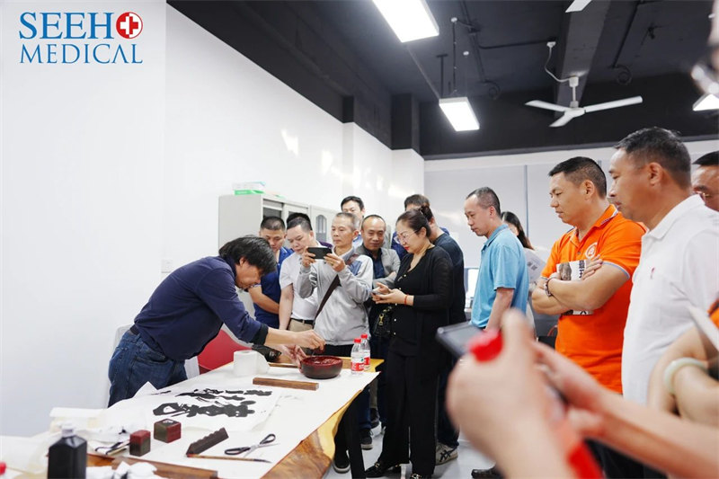 随后,著名的篆刻、书法大师钟国康老师与来宾们分享了“文”与“创”的精神,他提到文化与创意的结合,能在有效保持文化传承的同时,创造全新的文化,让文化更有生命力。钟国康老师更是现场挥毫泼墨,引得一众贵宾们围观赞叹。