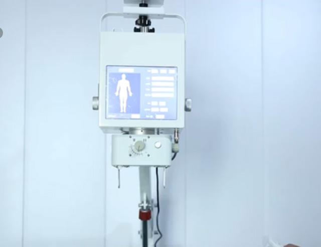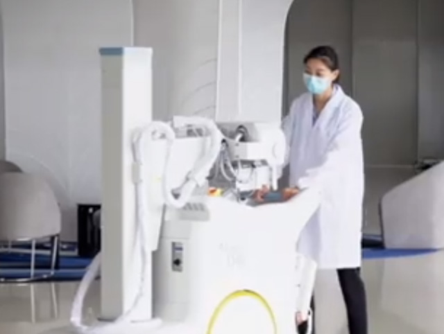 这是一台便携式移动DR,它的操作使用方法是怎样的呢?即使在最狭窄的空间内也易于操作和定位。首先打开开关把移动支架调整到合适的高度。机头调整到合适的拍摄高度,按下开关打开视野灯,调节照射灯的大小。调整束光器的视野范围,选择合适的部位调整KV、MA等曝光参数。数字工作站查看图像,曝光方式一:两档有线手闸曝光,曝光方法二:无线遥控曝光。这两种曝光方式选其中一个就可以了。电脑上显示图像,调整图像到满意的状态就可以了。高千伏摄影图像图层层次更加丰富,X射线穿透力更强适用多体型患者拍摄。跟固定DR的拍摄效果差不多,临床图像清晰。极速快充电,即插即用型。
