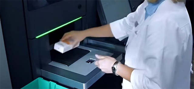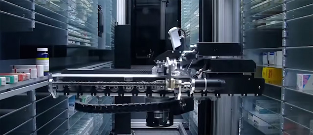 发药机最快可以8秒完成配药。高峰时候可以2秒发出一盒药。一张处方以5盒药品计算只需要8-12秒就可以配齐。大大的提高了发药效率。发药机还有自动锁定功能,还可自动识别过期的药品。过期药品将不予发放,当缺少部分药品时候,后台将药品传输到后台药剂师人工添加好后再传输到前台。很多人讲这个不就是一个机械臂吗?可以进行扫描取货。看视乎不难,其实还是有很高的技术含量的。