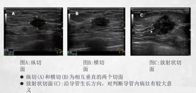 乳腺DR检查乳腺的纵切和横切为相互垂直的两个切面,放射状切面,也就是以乳头为中心来进行一个扫查,为什么要强调放射状切面呢?可以看到病灶是沿着导管方向的。沿导管生长方向,对判断导管内病灶有较大的临床意义。检查留图要有横纵切面,放射状切面。乳腺病灶的定位有两种方法,一种是以乳头为中心,经过乳头水平线与垂直线,将乳房分为4个象限,外上下象限,内上下象限。另外一种是时钟定位法,以乳头为中心,采用12小时钟点制,病变距乳头的距离。