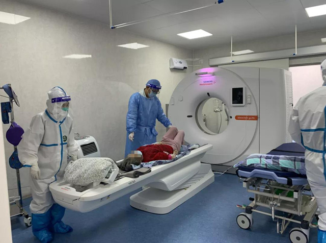 医院发热门诊就诊,长方体箱子中进行CT胸部检查。这个就是方舱CT,在疫情防控期间发挥了重要作用。严格的场地布局,设备组装,质量控制检测,放射防护检测,就可以马上投入使用。方舱CT独立在医院大楼外面,主要是配套发热门诊使用。如果有疑似病人就通过专用通道进入方舱CT检查。双向单通道没有与外界联系。CT检查准时高效,确保了检查的强隔离没有任何接触,可以保障检测人员跟病人没有感染的风险。采用闭环管理,检查人员的口罩、隔离衣服、手套都是全方位的消毒。CT扫描检查好后的图像质量。上传到数据系统然后查看图像。各个科室的医生也可以通过网络看片。方便高效快捷。方舱CT的启用为患者提供精准的影像诊断,为医生提供快捷的影像报告、准确的参考依据,疫情防控提供有力的数据支持。