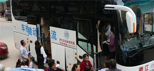 妇幼保健院的体检车医护人员上山下乡,下到社区。为人民群众开展国家免费婚前医学检查与孕前优生健康检查。原来是群众自己到医院进行免费检查的。为了疫情防控需要,减少人员到医院聚集避免交叉感染。体检车上门服务,为提高婚检率、孕检率开辟了新路子。体检车很受欢迎,群众络绎不绝地前来,自愿接受婚前医学检查、孕前优生健康检查。