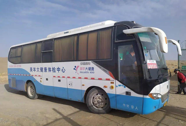 为减少员工的长途奔波,一线员工需要离队参加体检的情况。为解决了在沙漠地区交通不便的难题,移动大型体检车上门体检,享受高质量的体检服务。体检车携带全套专业体检设备,驱车几百公里。为沙漠地区的施工人员干部进行健康体检。体检车医生为每名员工进行B超、心电图、胸透、电测听等项目的检查,并根据检查结果做出日常饮食、休闲锻炼、劳动保护、健康养生等方面的专业指导,并提出可行性的意见和建议。体检结束后,他们还为员工讲解预防三高知识、日常急救等知识。让员工足不出户就能享受专业的体检服务。