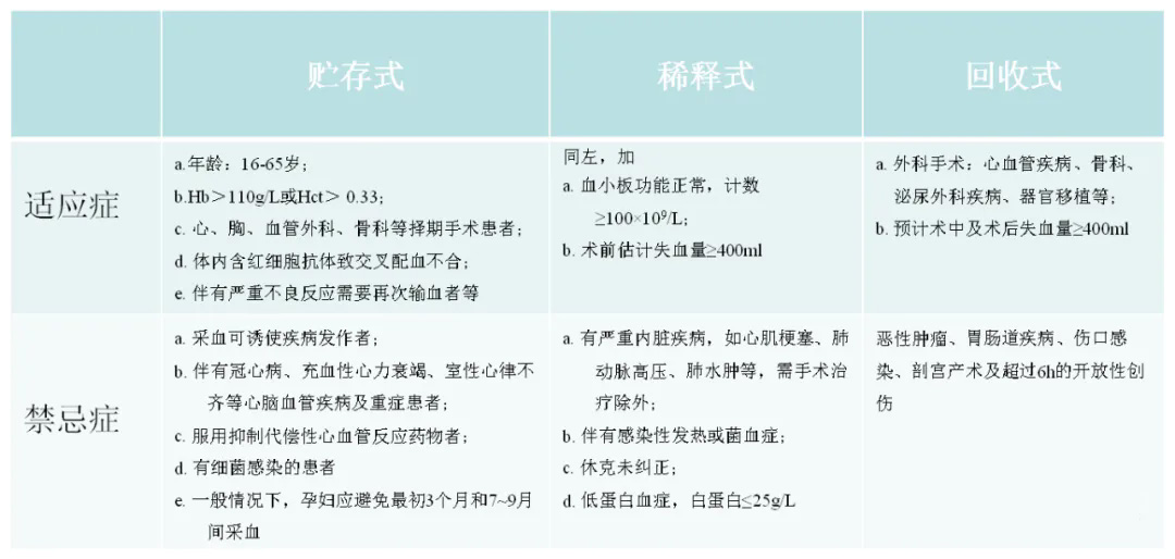 自体输血是采集自身血液或者血液成分,或者回收自身无污染的血液,回输给自身的一种输血疗法。自体输血分为三类,储存式、稀释式(急性等容性稀释式,急性非等容性稀释式,急性高容性稀释式)、回收式(术中回收式、术后回收式)。