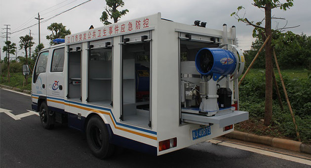 消杀车的后工作平台带专业的远程风送式喷药打药机,雾化效果好,喷药范围广,流动性强
